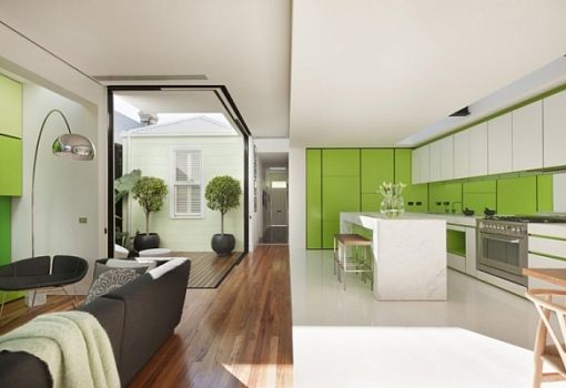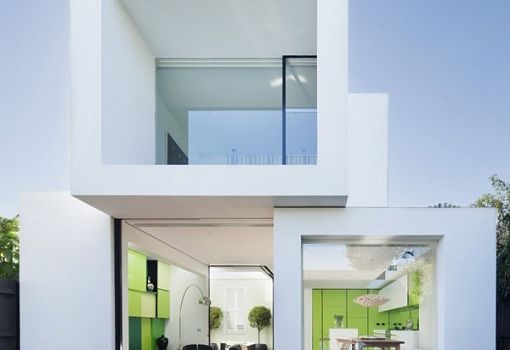Любопытный подход к архитектуре демонстрирует проект частного дома от Matt Gibson Architecture - Shakin Stevens House в Мельбурне (Австралия). Сооружение представляет собой сочетание трех минималистских кубических объемов, которые предлагают сочетание открытых, закрытых и полузакрытых пространств. В интерьере дома реализован прием цветовых контрастов, который придает композиции динамику.