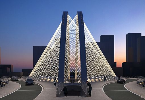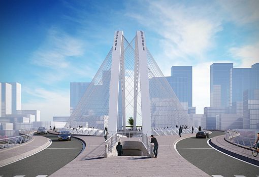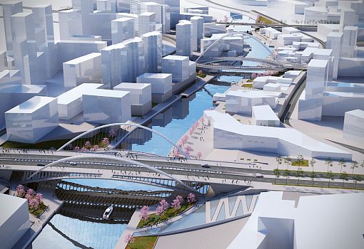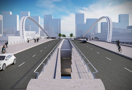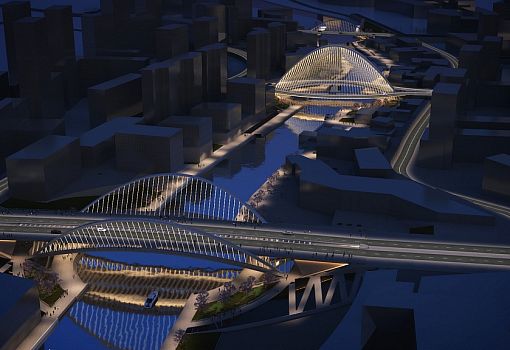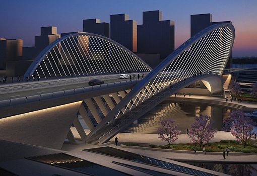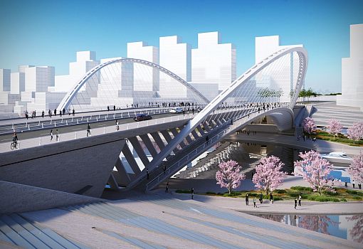 Центральный мост Сяньби протяженностью 129 метров вместит две полосы движения. Высокие арки моста (42,3 м) создадут «характерную пустоту», отмечает архитектор. С западной стороны построят Сиху протяженностью 102, 7 м. С восточной стороны канала будет возведен 118-м мост Линькон. Струны его арок протянутся наружу от центра, достигая 26-метровой высоты. Строительство планируется начать в конце 2016 года.