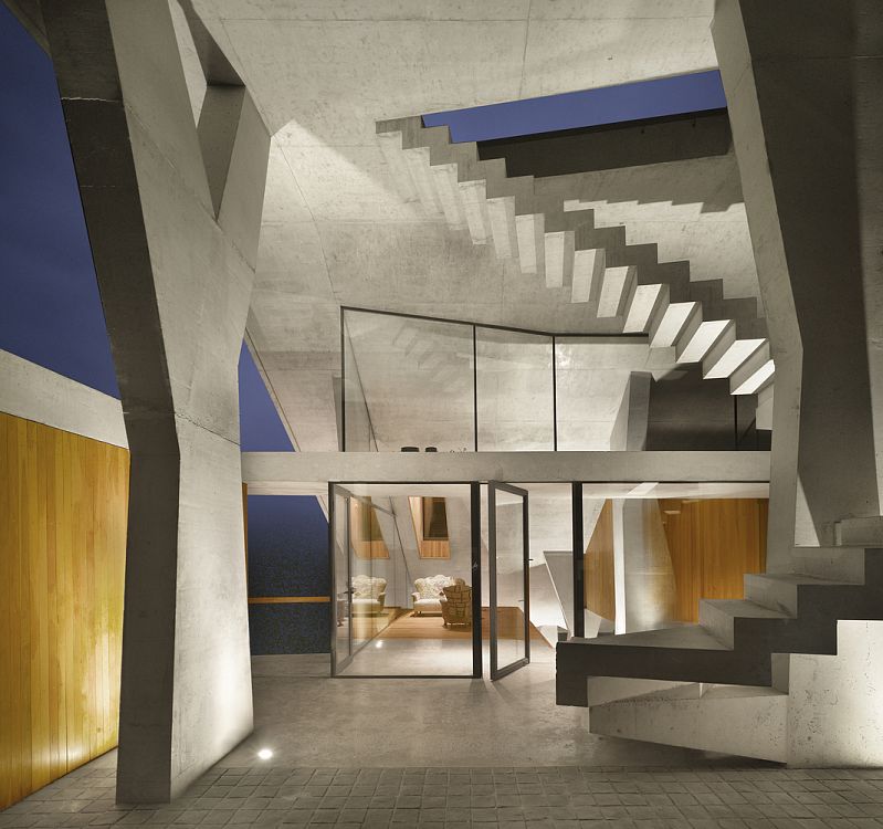 Чилийский архитектор Макс Нуньес спроектировал дом общей площадью 390 кв.м, построенный на прибрежном склоне холма под углом 25 градусов. Это еще один удачный пример того, как архитектура следует за ландшафтом.