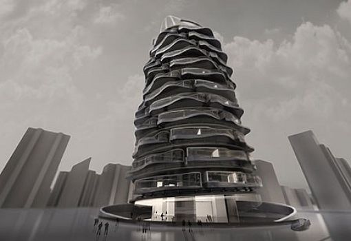 Промышленный дизайнер Шин Куо из Тайваня предложил концептуальный проект вращающейся жилой башни высотой 27 этажей. Система из жилых модулей может двигаться по восходящей спирали по технологии, подобной «американским горкам» (тормозные системы и инфракрасные датчики). Для создания модулей Шин Куо предлагает технологию объемной печати из различных материалов от алюминия и стали до гибкого бетона и искусственной кости. На данный момент проект находится на стадии поиска инвесторов.