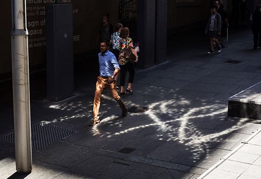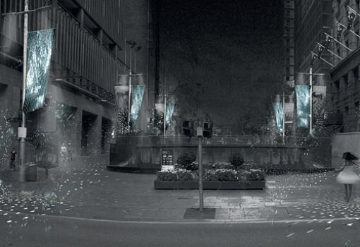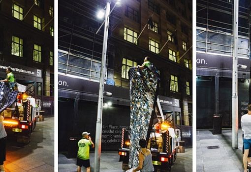 В Сиднее на пешеходной набережной в самом сердце делового района Мартин-плейс создана инсталляция под названием «Свет в стиле диско». Авторы идеи – дизайнеры Office Feuerman. Вместо уличных рекламных баннеров появились 23 листа размером 4,5 х1,5 м, изготовленные из кусочков тонкого отражающего материала, наклеенных на ткань. Эти полотна трепещут на ветру, отражая фрагменты урбанистической среды Сиднея. Световые эффекты, визуальные искажения и уникальные перспективы транслируются, усиливаясь от ветра и распределяясь по глубине пространства. Из темной непривлекательной магистрали улица мгновенно превращается в интерактивную площадку.