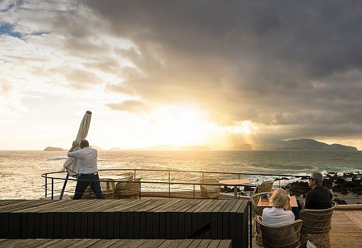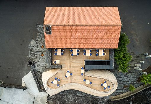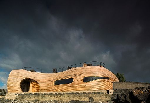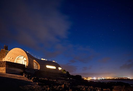 Контуры острова, местных скал, китов и винных бочек стали источником вдохновения для архитекторов FCC Arquitectura, создавших на побережье острова Пику (Азорские острова, Португалия) необыкновенный бар Cella. Примерно наполовину бар выполнен из местных базальтовых пород, и наполовину – из дерева. За основу проекта был взят старый заброшенный дом. Специалистам пришлось приложить немало усилий, чтобы восстановить его внешний вид и интерьеры в соответствии с требованиями действующего законодательства. Стены, крыша и дверные рамы отреставрированы, основные черты оригинальной конструкции сохранены. К старому дому архитекторы добавили абсолютно новую деревянную пристройку с обтекаемыми формами и округлыми окнами разной величины и формы. Новый объем контрастирует с прежним зданием, напоминая то ли скульптуру, то ли громадную винную бочку.