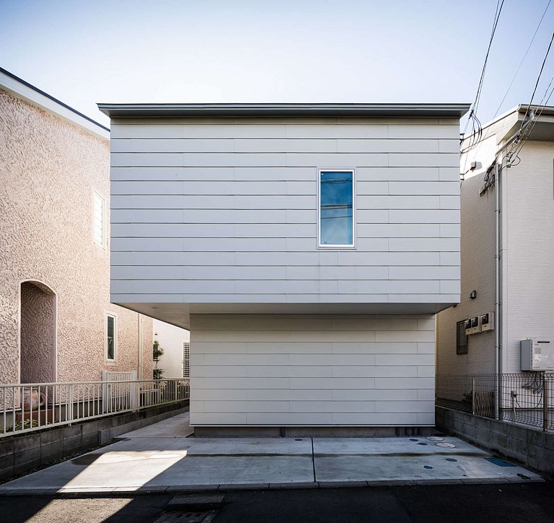 В доме площадью 59 квадратных метров достаточно места для комфортного проживания семьи из четырех человек. Умное использование пространства заключается в разделении интерьера на три платформы: прихожая и гостиная на первом этаже, кухня и столовая на этом же уровне, а также детская игровая комната на втором этаже, которая может быть переоборудована в спальню. Три комнаты составляют внутреннее пространство, очень плавно перетекая друг в друга. Окна расположены так, чтобы увеличить поток естественного света, а высокие потолки увеличивают объем. Внизу располагаются более традиционные, раздельные комнаты.