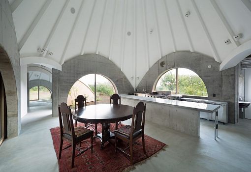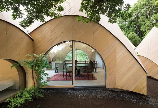 Японский архитектор Иссеи Сума разработал оригинальный жилой мини-комплекс под названием «Дзикка». Пять конусообразных структур, связанных между собой, напоминают вигвамы. Каждый домик имеет арочные стены и остроконечную крышу. Экспериментальный комплекс предназначен для проживания пожилых людей с ограниченными возможностями. Объект Jikka находится в гористой местности префектуры Сидзуока.