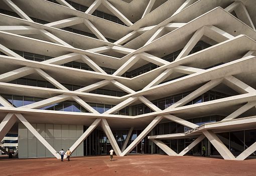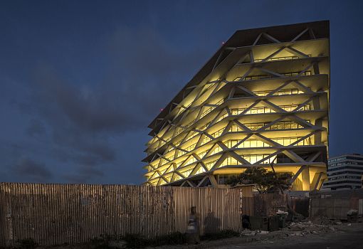 Бизнес-центр в Гане от архитекторов Mario Cucinella Architects предлагает современный взгляд на архитектуру с отсылкой к традициям. Фасад особой формы вдохновлен местным искусством и рисунком коры пальм. Проблемы сурового климата региона удалось решить благодаря ряду технологических и экологических идей. В итоге проект One Airport Square стал первым зданием в Гане, получившим 4 звезды по версии GBCSA (Совет экологичного строительства Южной Африки). Общая площадь строения 17000 кв.м.