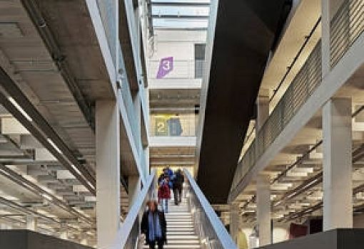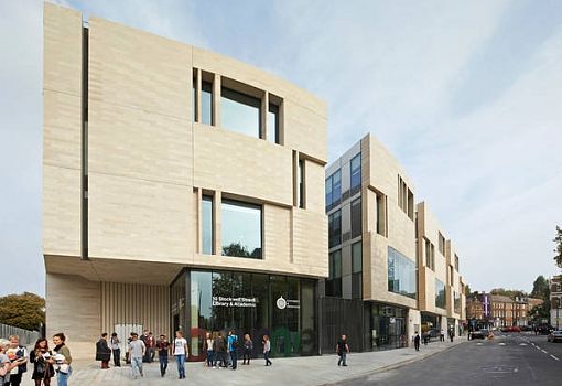 Новый учебный корпус и здание библиотеки Университета Гринвича открылись в декабре 2014 года. Ключевым моментом в их создании был местный контекст, а также задачи охраны памятников архитектуры. В итоге архитекторы бюро HeneghanPeng сумели спроектировать здания сложной структуры с непохожими фасадами. Новый университетский комплекс расположен на исторической территории кампуса, отдельные объекты которого входят в список всемирного наследия ЮНЕСКО. Поэтому требования к их дизайну предъявлялись самые серьезные. Высота строений не превышает пять этажей. Университетская библиотека состоит из двух объемов, соединенных атриумом. На первом этаже есть кафе, магазины, выставочная площадка, однако львиную долю площади занимают учебные помещения. Для студентов факультета ландшафтной архитектуры на плоских крышах было заложено 14 садов общей площадью 2800 м². Нижняя часть фасада библиотеки остеклена и образует зигзагообразную череду выступов. Этот же зигзаг прочитывается в дизайне учебного корпуса. Верхняя часть фасада облицована панелями из стеклобетона высотой 3, 25 м каждая. Они такого же цвета, как и каменная облицовка из известняка исторических зданий кампуса.