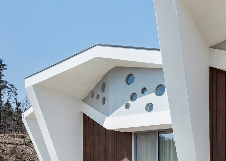 Дизайнеры бюро HG-Architecture и UIA разработали современную концепцию, в основе которой группа модулей. Строения выделяются на фоне горного массива и обеспечивают вдохновляющие виды на реку и близлежащий город. Белоснежные модули занимают площадь 195 кв.м.