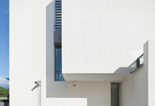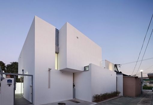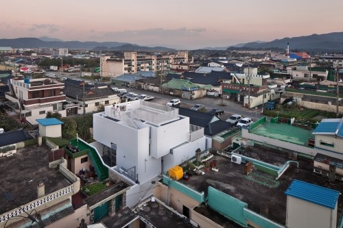 ... находится частный дом от бюро JMY, построенный в одном из южнокорейских городов. Дело в том, что архитекторы столкнулись с целым рядом ограничений в процессе проектирования. В итоге планировку пришлось несколько раз менять. Но в конечном итоге авторам удалось композиционно объединить несколько белоснежных прямоугольных объемов. Общая площадь здания 172 кв.м.