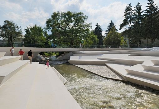 Променад пересекает реку Пака, протянувшись над ней мостом. Ложе реки довольно глубокое, часто она разливается, поэтому прежде никто не брался за оформление набережной. Архитекторы полностью реконструировали мост, сузив его и встроив в амфитеатр, спускающийся прямо к поверхности воды. Таким образом, появилось пространство для различных культурно-массовых мероприятий, и река стала заметной городской достопримечательностью.