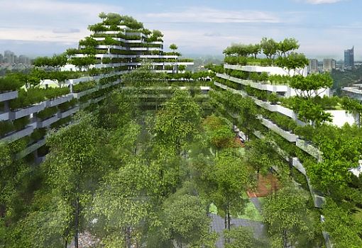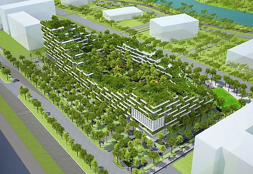 Устойчивое проектирование и интеграция в архитектуру природных элементов стали узнаваемыми приемами бюро Vo Trong Nghia Architects. Очередной проект это подтверждает – на площади в 22500 кв.м. планируется создать настоящий оазис в каменных джунглях. В результате должен получиться университетский городок FPT в Хошимине (Вьетнам), выполненный в виде горного массива со множеством деревьев, которыми предполагается засадить все балконы и террасы.
