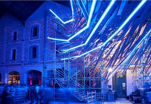 Известные парижские мастера света и видеоинсталляций - бюро 1024 architecture - создали во Франции новую архитектурно-световую инсталляцию Vortex («Вихрь»). Она расположена в экологическом жилом квартале города Бордо и словно бы «оплетает» переходный мост между двумя зданиями. Инсталляция создана их необработанной древесины и целого набора светодиодов. Цветные светодиодные индикаторы, «выстреливающие» сквозь структуру, открывают зрителям новый пространственный опыт и информируют об энергопотреблении в здании. Глядя на вспыхивающий Vortex, можно подумать, что это живой организм: он «дышит», дрожит и испускает световые импульсы. Его можно синхронизировать и с музыкой, чтобы подчеркнуть основную идею его создателей – искусство и архитектура неразрывно связаны.