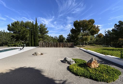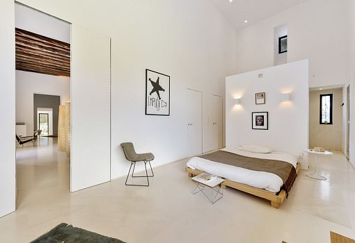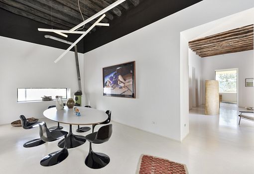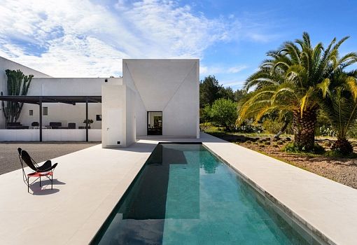 Парижский архитектор Паскаль Шейх-Джавади (Pascal Cheikh-Djavadi) построил роскошную виллу на Ибице. Строение выполнено в минималистском стиле. Расположенная в сельской местности в центре острова, вилла с ее минималистской элегантностью и резкими геометрическими формами образует разительный контраст с окружением. В целом концепция опирается на характерные элементы архитектуры острова: традиционная прямоугольная основа, особое расположение оконных проемов (много света, мало прямых солнечных лучей). Центральное место в особняке занимает многоцелевая гостиная. Ритм интерьера задается рядом вертикальных окон; в доме белые стены и полированные бетонные полы. Отдельные камины установлены в гостиной и главной спальне, которая также имеет большое окно, выступающее за плоскость фасада и дающее возможность наблюдать за окружающей природой. Во всех комнатах использована спокойная цветовая палитра. Прослеживаются элементы дзенской культуры (татами, бумажные плафоны).