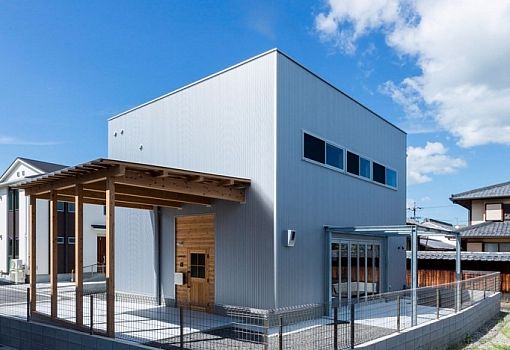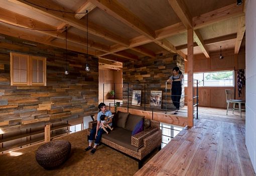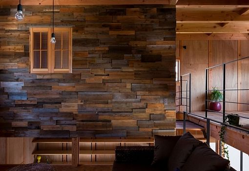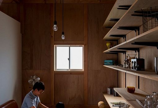 Снаружи жилой дом в Шиге (Япония) напоминает индустриальную постройку: ничего лишнего. Однако тех, кто заглянет внутрь, ждет сюрприз. Интерьер здания решительно противопоставлен его архитектуре. Архитекторы ALTS DESIGN OFFICE использовали дерево, создав уникальную теплую атмосферу загородного дома в черте города. Металлические конструкции в виде каркасов лестниц и ограждений в совокупности со свисающими с потолка лампочками довершают композицию.