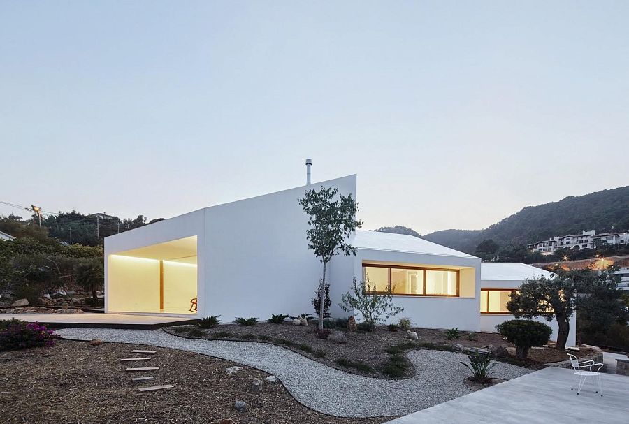 Минималистский дом ММ от архитекторов бюро OHLAB был построен с применением современных энергосберегающих технологий. Четыре монохромных объема ориентированы в пространстве особым образом с целью оптимизации естественной вентиляции и обеспечения самых живописных видов.