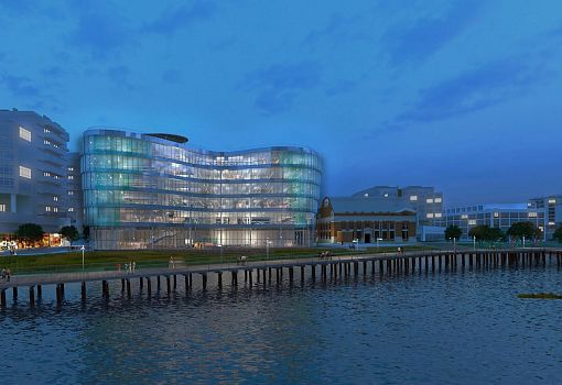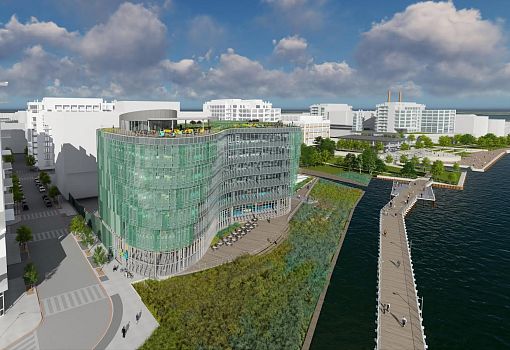 Smith Group JJR в партнерстве с Skanska намерены спроектировать и построить новую шестиэтажную штаб-квартиру для госкомпании по обслуживанию водопроводных и канализационных сетей округа Колумбия (DC Water) в США. Штаб-квартира стоимостью $ 60 млн. будет построена на месте существующей насосной станции O Street Pump Station вдоль набережной реки Анакостии на юго-востоке Вашингтона. DC Water продемонстрирует свое бережное отношение к проблемам экологии, построив столь инновационный объект, дизайн которого разработан бюро Smith Group JJR в сотрудничестве с застройщиком Skanska. Будущее здание должно не просто получить платиновый сертификат LEED, в нем будет использовано множество передовых технологий, превосходящих эту сертификацию. Влияние солнечного тепла и бликов минимизированы благодаря уникальному степпингу полов. Серия зеленых тонированных стекол на фасаде обеспечивает дополнительный контроль над температурным режимом помещений. Изогнутый фасад также помогает контролировать обильное естественное освещение в здании и повторяет изгиб реки Анакостии. Уникальная термальная система очистки сточных вод позволит использовать собственные сточные воды в качестве источника тепловой энергии для кондиционирования здания, что позволит ему стать одним из самых энергосберегающих офисных зданий в регионе. Строение в форме волны будет разительно отличаться от прямоугольных архитектурных форм, доминирующих в округе Колумбия. Из новой штаб-квартиры на реку будет открываться чудесный панорамный вид, визуально «подключающий» работников к самой сути миссии DC Water - воде. Строительство планируется завершить в 2017 году.