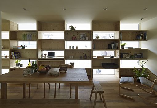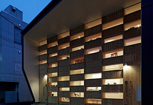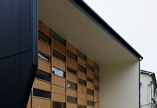 Проект Checkered house – это современное деревянное здание, строительство которого соответствует всем нормативам по защите от стихийных бедствий. Разработал этот дом архитектор Такеши Шикаучи (Takeshi Shikauchi), объединивший в одном проекте металл и дерево. «Клетчатый» фасад, изготовленный из фанеры, стекла и кедровых панелей, находится под длинным навесом, благодаря чему дерево защищено от дождя и воздействия ультрафиолета.