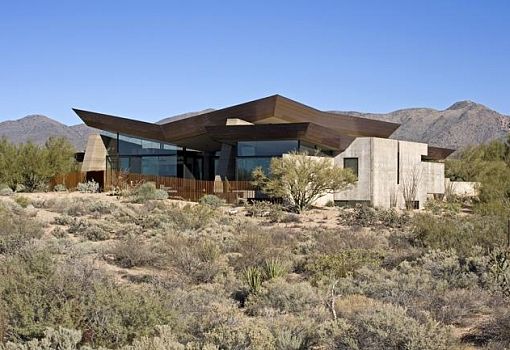 Частный особняк находится в пустынной местности неподалеку от Скоттсдейла (Аризона, США). Подобные постройки их автор, архитектор Брент Кендл (Brent Kendle), называет дышащими домами. Почему? Во-первых, по форме здание напоминает павильон, раскрывающийся наружу. Мощные бетонные стены спасают обитателей особняка от жары. Во-вторых, композиция объекта такова, что он оказывается открытым для всех ветров, благодаря которым осуществляется естественная вентиляция интерьера.