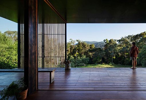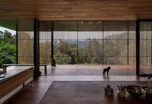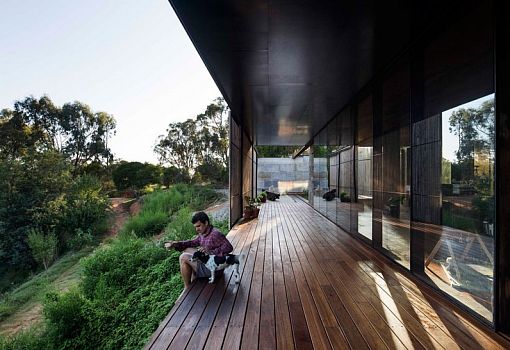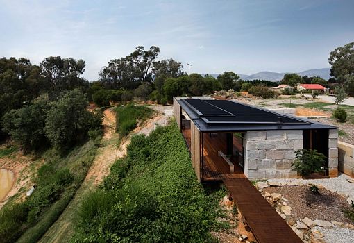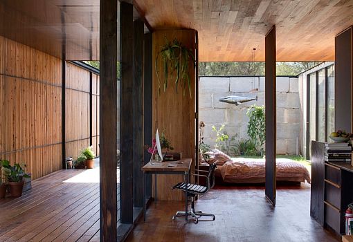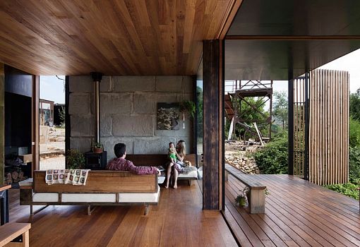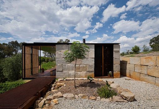 Дом в Австралии от студии Archier для молодой семьи из трех человек, расположенный на вершине холма, стал своего рода экспериментом по вторичному использованию блочного бетона. Для создания семейного гнездышка было использовано 270 «вторичных» блоков, которые пошли на выкладку стен. Также использовались и другие материалы, в частности, дерево. Благодаря открытой планировке интерьеров внутреннее и внешнее пространства плавно перетекают друг в друга. Особняк погружен в окружающую природу, солнечный свет, но при желании он может быть закрыт от ветра и жары. Его форма позволяет ветрам долины беспрепятственно проникать внутрь. Так осуществляется естественная вентиляция помещений.