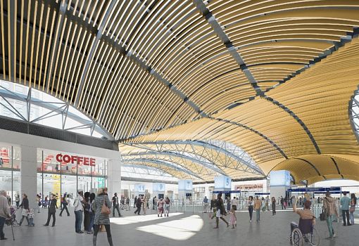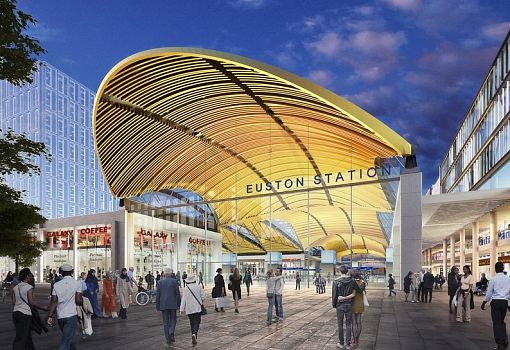 Консультанты Arup и архитекторы бюро Grimshaw продемонстрировали изображения будущего высокоскоростного терминала на станции «Юстон» в Лондоне. Когда он будет закончен, то обеспечит курсирование высокоскоростных поездов между Лондоном и северными районами страны. Сводчатая крыша вместит под собой 11 новых платформ, расположенных ниже уровня улицы. Также будут сохранены и уже существующие платформы. Станция площадью 25 260 кв. м будет иметь стеклянный фасад. Новые общественные пространства внутри станции образуют плавное продолжение городских улиц и площадей. Подземные сооружения в «Юстон» также будут значительно улучшены, появятся прямые рейсы на метро до станции «Юстон-сквер». Доступ к такси и автобусам также будет облегчен.