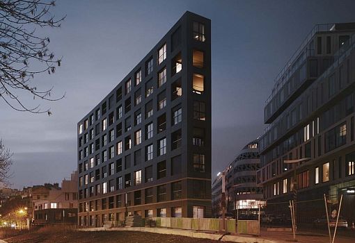 Архитекторы LAN закончили в прошлом году строительство жилого дома в Париже. Он называется Building rue de Saussure и играет ключевую роль в объединении двух исторических частей городской застройки. Необычная объемно-пространственная композиция сооружения (треугольная призма нейтрального темно-серого цвета; «отколовшийся» кусочек – открытая терраса) выделяет его на фоне окружающих зданий. Дом площадью 2900 кв.м. включает 40 апартаментов и пространство для коммерческой деятельности (1-й этаж).