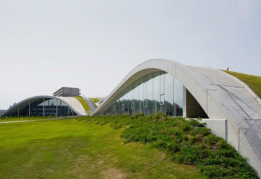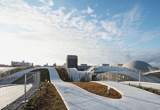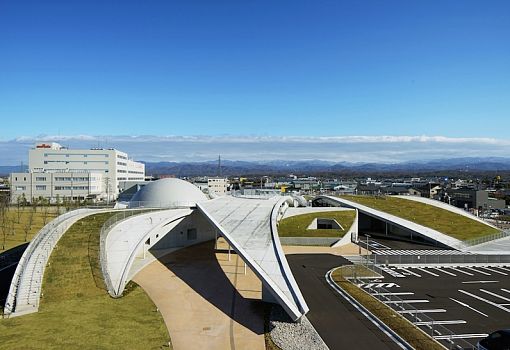 В японском городе Комацу бюро UAO разработало образовательный музейно-коммуникационный комплекс под названием «Научные холмы». Он состоит из серии волнообразных подъемов, которые содержат ряд культурно-образовательных и научных объектов, включающих 3D-купольный театр, комплекс продвижения промышленности и инкубационный центр. Общественный сад на крыше простирается по всей поверхности искусственных холмов, объединяя архитектуру здания с окружающим природным ландшафтом.