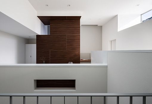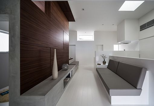 Даже в густонаселенном районе большого города можно построить уютный дом, защищенный от любопытных взглядов соседей. Это в очередной раз сумел доказать создатель японской архитектурной фирмы FORM Коуичи Кимура. Здание возведено в одном из районов префектуры Шига и окружено узкими дорожками. Снаружи оно покрыто серой краской. Верхний этаж нависает над нижним, создавая защитный козырёк для парковки. Интерьер оформлен в серо-белых тонах. Мебель по большей части интегрирована в пространство. Высота потолков варьируется, узкие окна установлены на разных уровнях; они обеспечивают доступ дневного света и берегут приватность внутренних помещений.