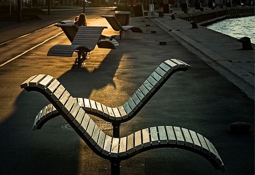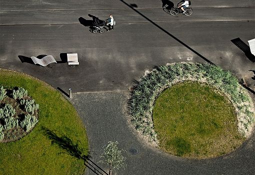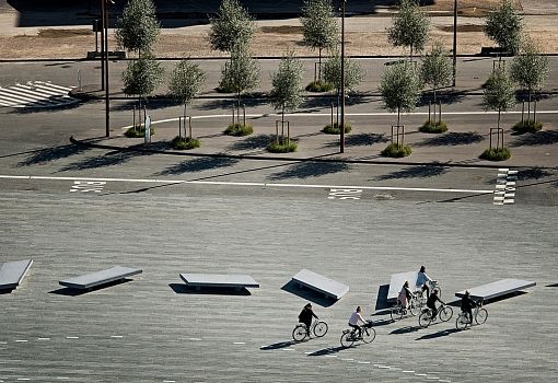 Набережная в Ольборге, третьем по величине датском городе, стала результатом 11-летней работы бюро C.F. Møller. Километровый участок, тянущийся вдоль узкой части фьорда, ранее был отрезан от города железнодорожными путями, оживленной дорогой, а также складами. В качестве основного мотива дизайнеры выбрали сочетание природных ландшафтов, характерных для этой местности: ровной, кое-где болотистой береговой линии и дюн. На втором этапе реконструкции, с 2013 по 2015 годы, был создан новый изогнутый бордюр. Он предназначен для защиты города от наводнений и визуального объединения новых зданий, расположившихся вдоль набережной, в единую композицию. Мощеные площадки постепенно спускаются к набережной, образуя на ступеньках и уступах уютные, защищенные от ветра зоны отдыха. Материалы выбраны самые простые: асфальт, бетон и дерево. Круглые зеленые зоны засажены местными травами, кустарниками и небольшими деревьями. Интересно, что разнообразные сиденья, установленные на набережной, смотрят в разных направлениях, чтобы «поймать» солнечный свет или лучшие виды.