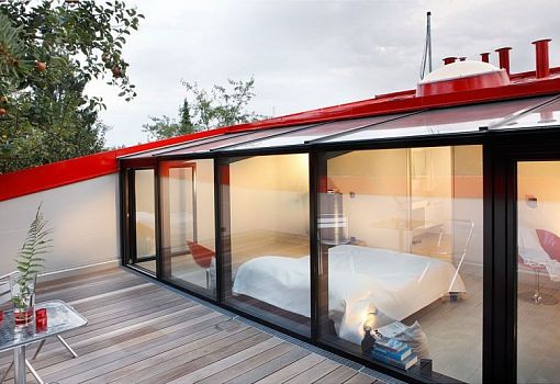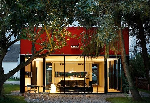 Проект Architekturbureau Jakob Baden – это небольшой, но впечатляющий дом в Мюнхене (Германия). Скромный бюджет и ограничения в размерах здания не помешали авторам создать эффектную постройку с впечатляющей консолью на втором этаже. Наибольшее внимание привлекает стильный красный цвет фасада. Визуально расширить пространство архитекторам удалось благодаря большой площади остекления и созданию функциональных зон, например, таких как открытая терраса верхнего этажа.