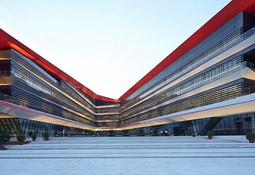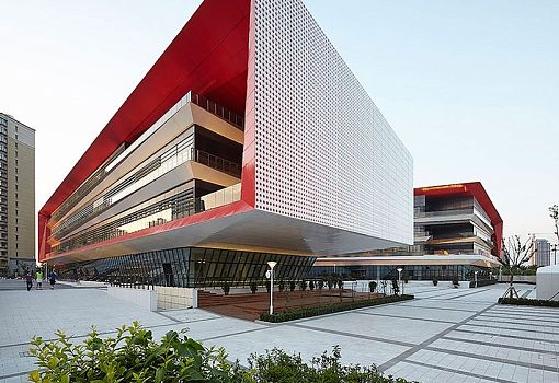 В эко-городе Тяньцзине студия HHD_FUN построила высшую школу «Биньхай Сяовай». Учебный комплекс отличается низким потреблением энергии.