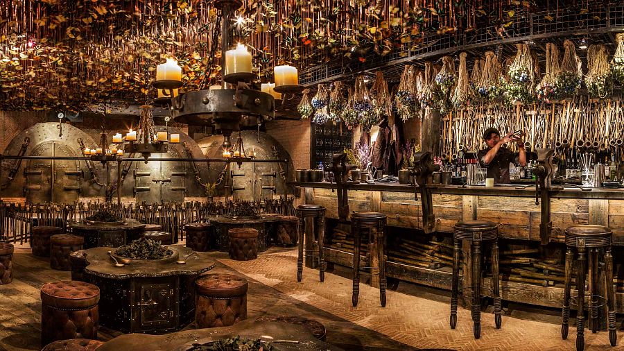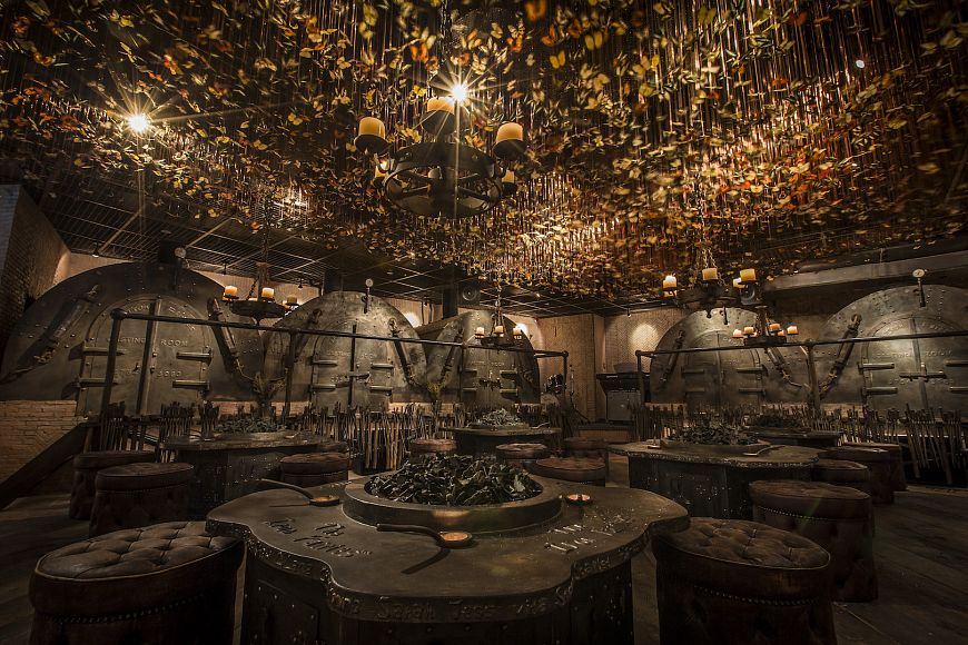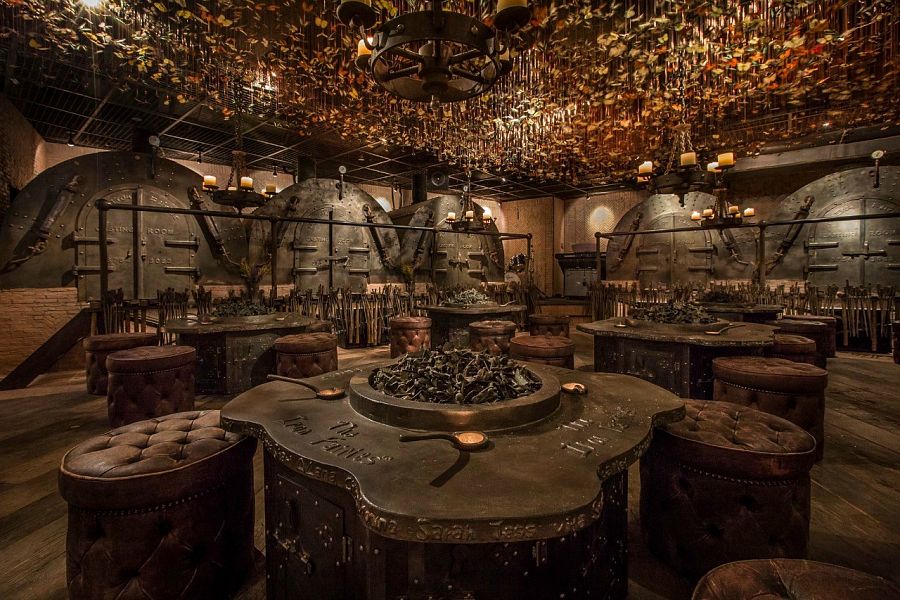 Интерьер этого сетевого бара (Бангкок, Гонконг и Токио), созданный дизайнером Эшли Саттоном, напоминает декорацию к фильму «Властелин колец» или пространство старой кузнечной мастерской.