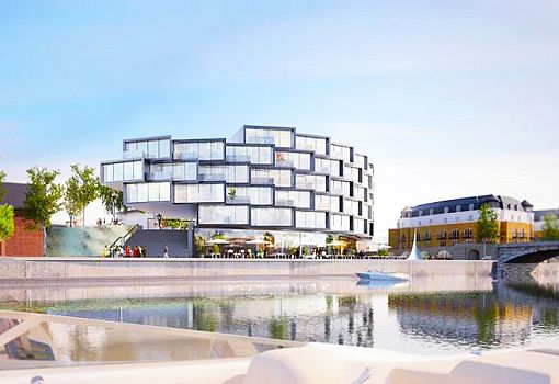 Проект жилого комплекса, венчающего автопарковку, представили архитекторы Architects of Invention в Лондоне. Концепция представляет собой сочетание консольных объемов, выложенных в структуру, похожую на соты. Круг застекленных модулей предоставляет открытые, обильно освещенные солнцем пространства. Архитекторы уделили особое внимание экологичности, рассчитывая использовать вторично переработанные материалы.