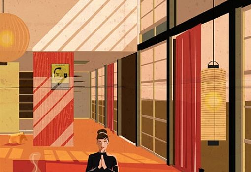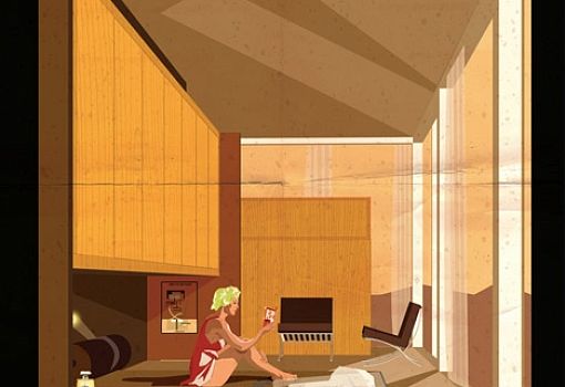 Так Одри Хепберн на иллюстрации Бабины медитирует на коврике в доме-студии Имзов, Кэри Грант гладит рубашки внутри Casade Canoas Оскара Нимейера. Мэрилин Монро уютно улеглась на диванчике в жилище от Миса ван дер Роэ. На другой иллюстрации Майкл Кейн старательно пылесосит ковер внутри дома «Эшерик» Луиса Кана, а Пол Ньюман разговаривает по телефону из стеклянного дома Филиппа Джонсона. «В Archilife я представляю 17 маленьких историй, пытаясь приблизить архитектуру к реальности, возвысить «банальность повседневной жизни», - говорит Бабина.