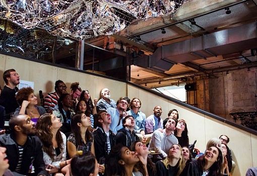 По заказу одной американской компании, производящей современные акустические системы, дизайн-бюро ThePrincipals при участии музыканта Дева Хинеса (Dev Hynes), он же BloodOrange, создало звуковую потолочную инсталляцию размерами 4,8х2,4х11 м. Вдохновившись поэзией Артюра Рембо, разработчики поименовали свой проект Ancient Chaos («Древний Хаос») – по строчке из стихотворения поэта, воспевающего скрытые закономерности природы, как основной источник чудес. «Серебряное одеяло» - именно так инсталляцию назвали критики - состоит из 6000 замкнутых в единую систему фрагментов пленки mylar (основа – полиэфирное волокно) со специальным серебряным покрытием. В основе действия системы – анализатор звукового спектра, «распознающий» звуковые колебания композиций Хинеса и отдающий команды мини-двигателям, которые, в свою очередь, приводят в движение отдельные части инсталляции.