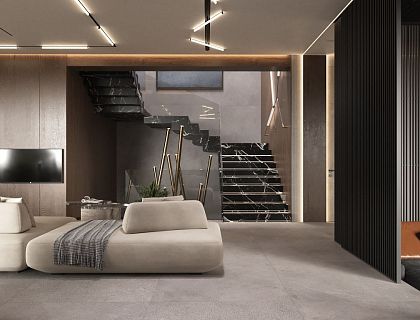 Красивая локация дома и замечательные заказчики - рецепт успешной реализации этого проекта. Второй свет как украшение и центр притяжения всего дома, дровяной камин, который послужил отправной точкой при строительстве дома, превратился в арт-объект.