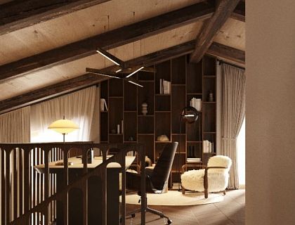 Сложная серо-бежевая гамма с чёткими геометрическими акцентами и нюансами чёрного. Философия проекта: Создание «тихого» восстанавливающего пространства через синергию сложной архитектурной трансформации, премиальной инженерии и сдержанного дизайна.