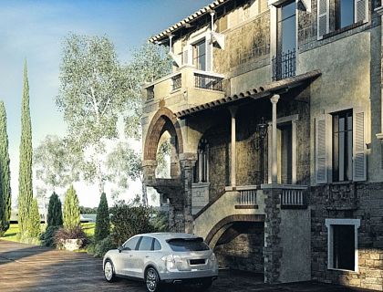 Пентхаус площадью около 500 м2, расположенный на кровле многоэтажного жилого дома на бульваре Шевченко в Донецке. На существующей кровле сформирован отдельный объём, занимающий практически всю её площадь. В проекте предусмотрены два пентхауса: один с плоской кровлей и выходом на эксплуатируемую террасу, второй — с кровлей с уклоном 12°. Конструктив выполнен из металлоконструкций, панорамное остекление изготовлено по индивидуальному заказу.