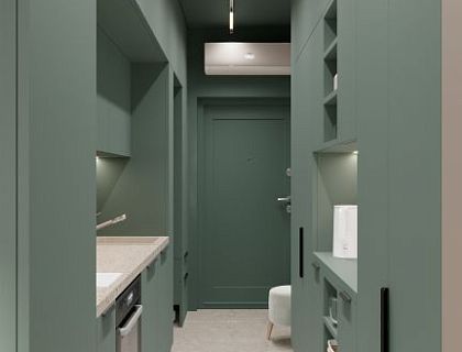 Дизайн проект этой квартиры был создан для обворожительной дамы. Легкой, интеллигентной и очень приятной в общении. Задача была создать удобное, комфортное пространство, наполненное цветами и шармом, где хозяйка могла бы с легкостью готовить чудесные блюда, отдыхать в кресле качалке на просторном балконе с котом на руках в окружение множества орхидей.