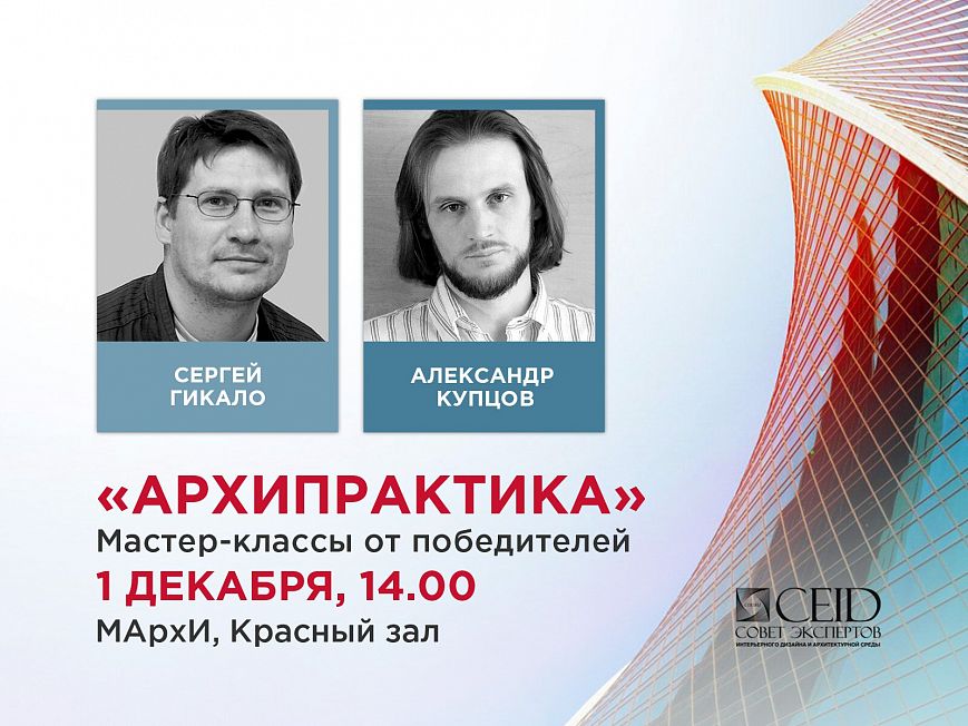 1 декабря в МАрхИ в рамках проекта «АРХИПРАКТИКА. Мастер-классы от победителей», созданного Советом экспертов интерьерного дизайна (CEID), выступят: