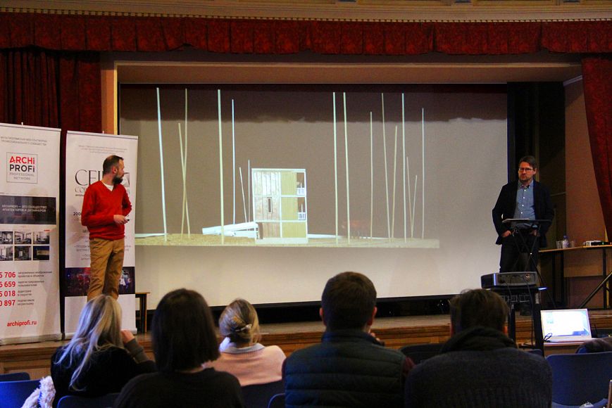 О своем творчестве рассказывали архитекторы Сергей Гикало и Александр Купцов – основатели и руководители известного архитектурного бюро GIKALO KUPTSOV ARCHITECTS, члены Союза архитекторов России, лауреаты российских и международных архитектурных премий и конкурсов.