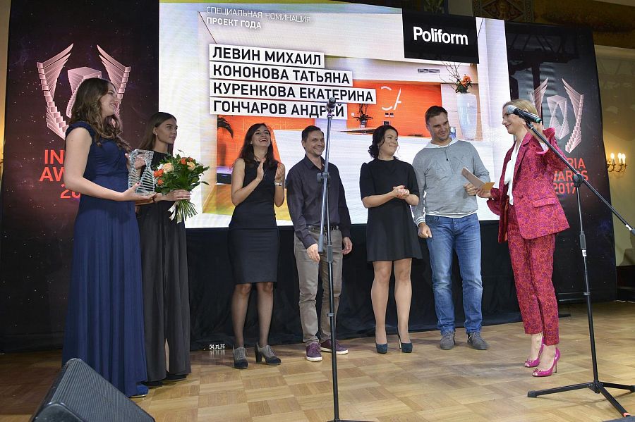 В этом году партнер премии INTERIA AWARDS, компания Poliform, учредила специальную номинацию «Проект года». Конверт с именами победителей в этой номинации собственноручно раскрыла представитель компаний Poliform/Varenna Светлана Королева. Лауреатами оказались молодые, но уже очень опытные и востребованные архитекторы Татьяна Кононова, Михаил Левин, Юлия Катаева и Наталья Ходякова. Усилиями творческого коллектива архитектурного бюро «Proektor» был создан проект отеля Cosmo Apartments Rambla в Барселоне (Испания). В апартаментах этого отеля кухни Varenna и мебель Poliform создают уют и комфорт для гостей комплекса.