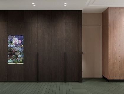Проект был разработан для молодой пары, которой было важно создать уютное пространство, где всегда можно зарядиться теплом и светом домашнего очага. Для реализации была подобрана медовая палитра. В отделке были использованы отделочные материалы, демонстрирующие природный рисунок: камень, дерево, металл. В интерьере присутствуют графические элементы, выполненные ППУ молдингами или рейками из массива дерева. Световые приборы выполненные в современном исполнении.